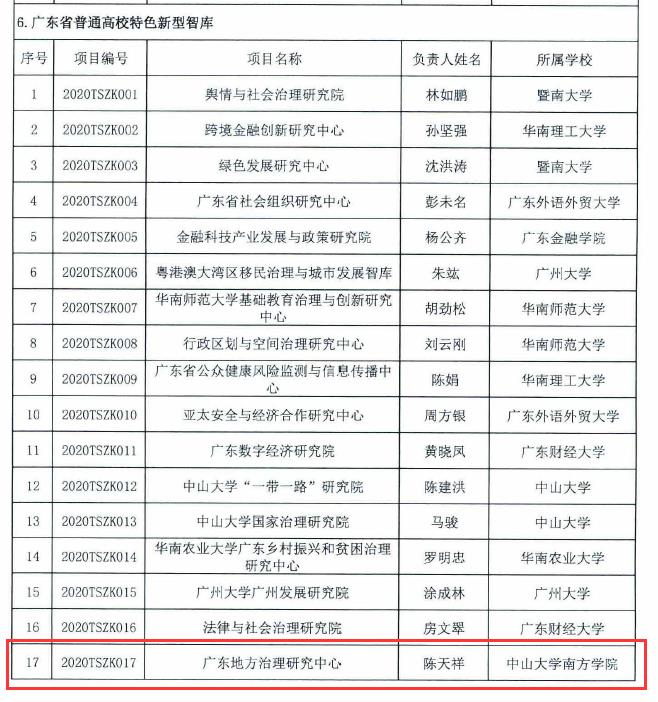 近日,广东省教育厅发布了《广东省教育厅关于公布2020年度普通高校重点科研平台和项目立项名单的通知》(粤教科函〔2020〕5号),beat365陈天祥教授负责的《广东地方治理研究中心》项目喜获普通高校特色新型智库类立项,项目编号为2020TSZKO17,这是beat365获批的首个省级科研平台,更是本次立项名单中首个且唯一获批立项的民办高校,是beat365科研平台建设工作的标志性突破。