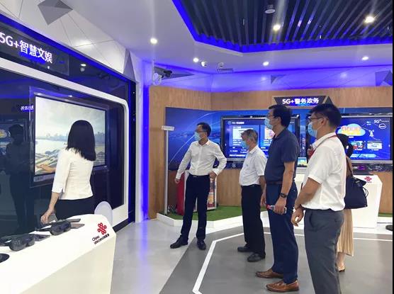 李建超书记一行首先参观了中国联通(广东)5G创新中心。广州联通公司党委书记、总经理孔祥斌亲自向大家详细介绍了5G发展历程、5G+智慧的路、5G+智慧城市、5G+智慧文教、5G+智慧交通、5G+智慧农业、5G+智慧家庭等5G新生态建设的实际成果。