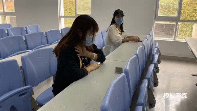 一名学生(辅导员扮演)在上课过程中出现咳嗽症状,任课教师立即安排该生邻座四名学生护送其前往医务楼就诊,任课教师和其他学生留在教室等候。