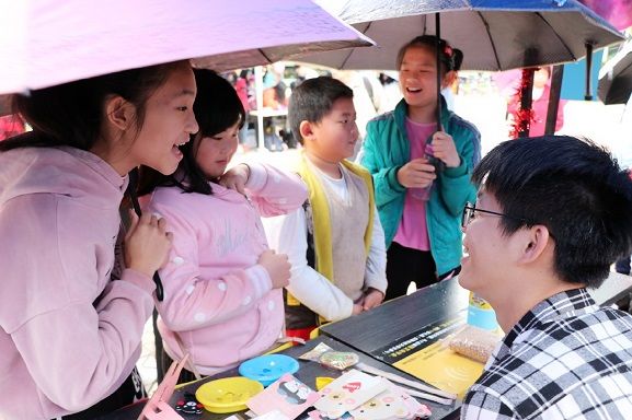 上午9时40分,在整齐嘹亮的团歌声中,活动正式开始。在“青春建功新时代,志愿奉献我先行”的主题基调中,各摊位的活动如火如荼地展开。本次活动共设有22个各具专业特色的志愿摊位,在志愿服务的基础上,各摊位展现出自我的特色与风采,给予了市民充满趣味性的活动体验。
