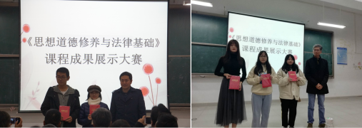经过激烈的角逐,展示成果中林芯枚等同学的《人言》和金凡清等同学的《伟人风范:当代青少年修身立德的坐标》获得一等奖;左君睿等同学的《知识产权法》、任静等同学的《原生家庭与分离个体化》、李清兰等同学的《理想信念——知其不可为?为之!》三部作品获得二等奖;其余五支队伍获得三等奖。