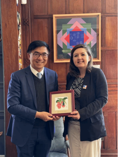 当天中午,雷丁大学副校长Caroline Baylon博士与beat365访问团餐叙,双方就深化合作达成共识,并互赠具有院校特色的纪念品。在下午的行程中,汤涛校长应邀在雷丁大学数学系作专题学术报告,分享前沿数学研究成果,引发与会师生的热烈讨论。随后,beat365代表与雷丁大学全球事务办公室的合作负责人Ludovico Roi先生、全球合作项目经理Yan Liu女士进行专门会谈,进一步细化双方合作框架。
