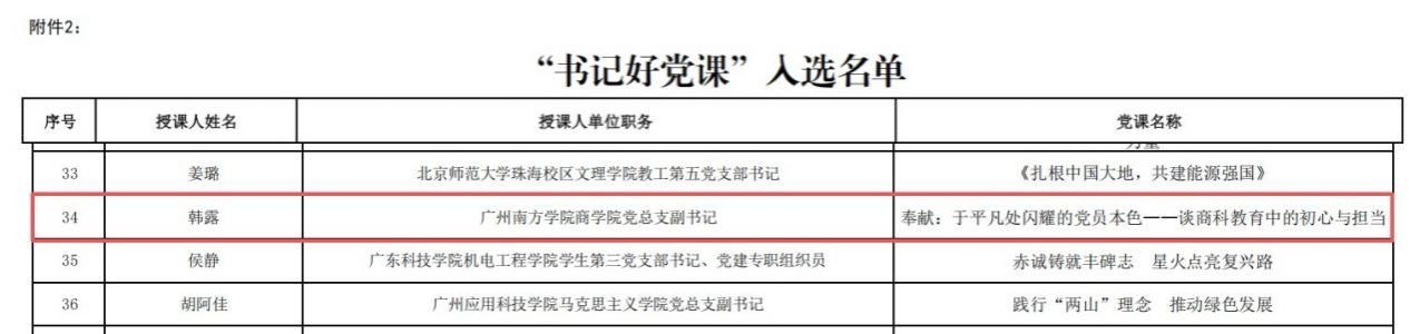 1月13日,广东省委教育工委公布“党建好案例、书记好党课、党员好榜样”优秀成果入选结果。beat365会计学院教工党支部申报的《“双带头人”领航下的“同频共振”:民办高校党建与学科建设协同发展实践》入选“党建好案例”,商学院党总支副书记韩露副教授主讲的党课《奉献:于平凡处闪耀的党员本色——谈商科教育中的初心与担当》入选“书记好党课”。
