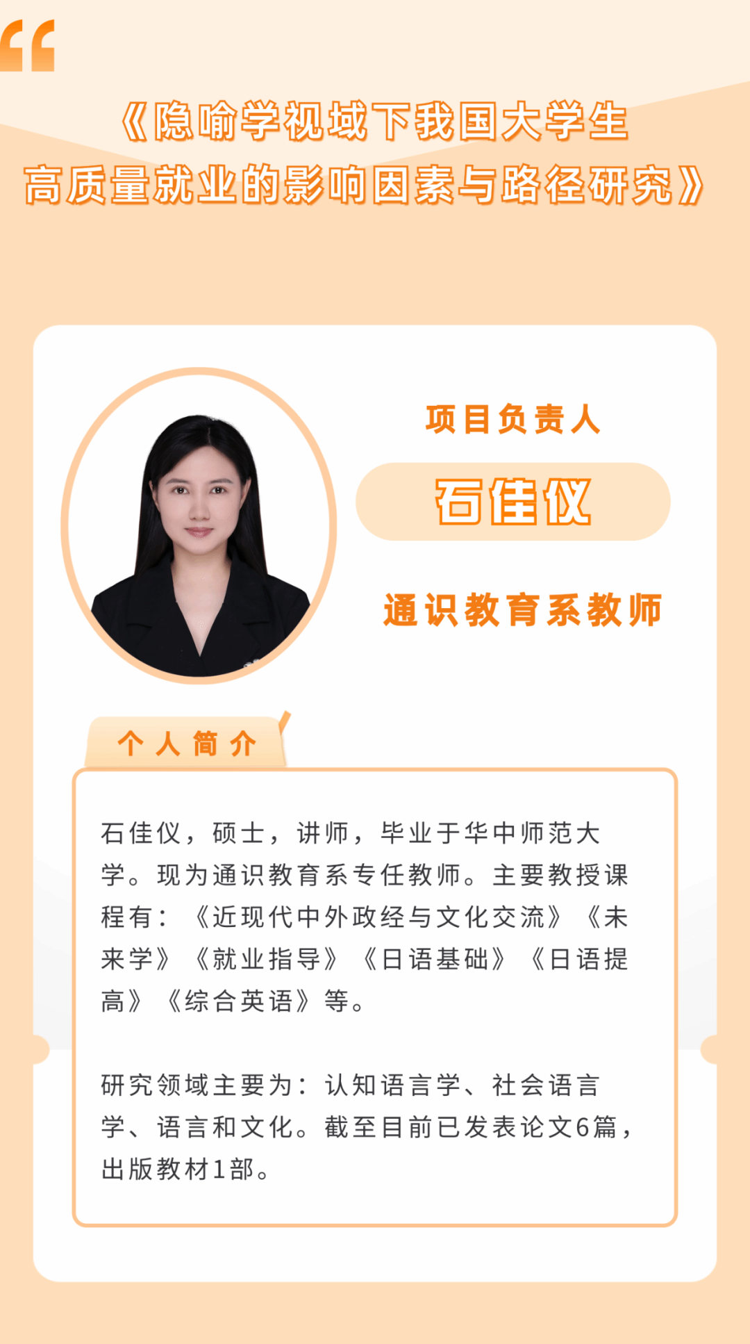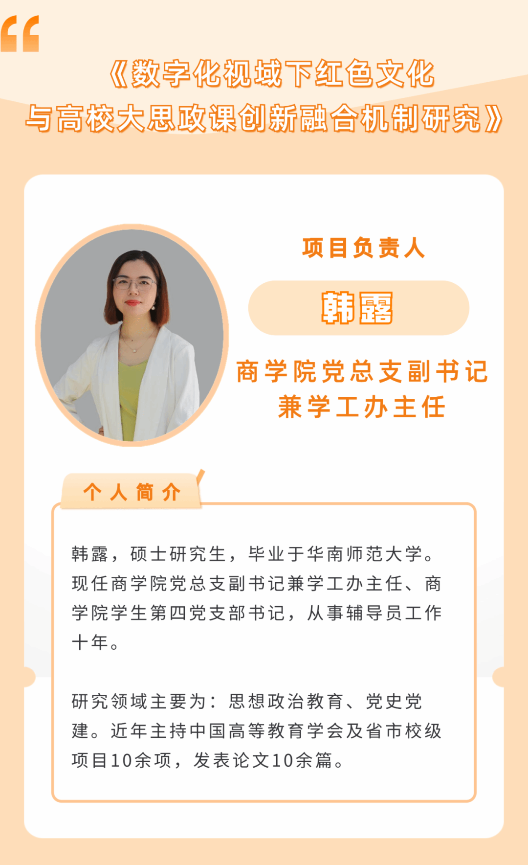 本次项目的成功获批得益于学校长期以来对师资队伍开展的专业化、个性化培养工作。通过持续打造“辅导员赋能计划”,开展课题建设活动及跨学科、跨领域的合作研究工作等,帮助教师提高科研水平和国家级课题申报成功率,营造浓厚的科研氛围。