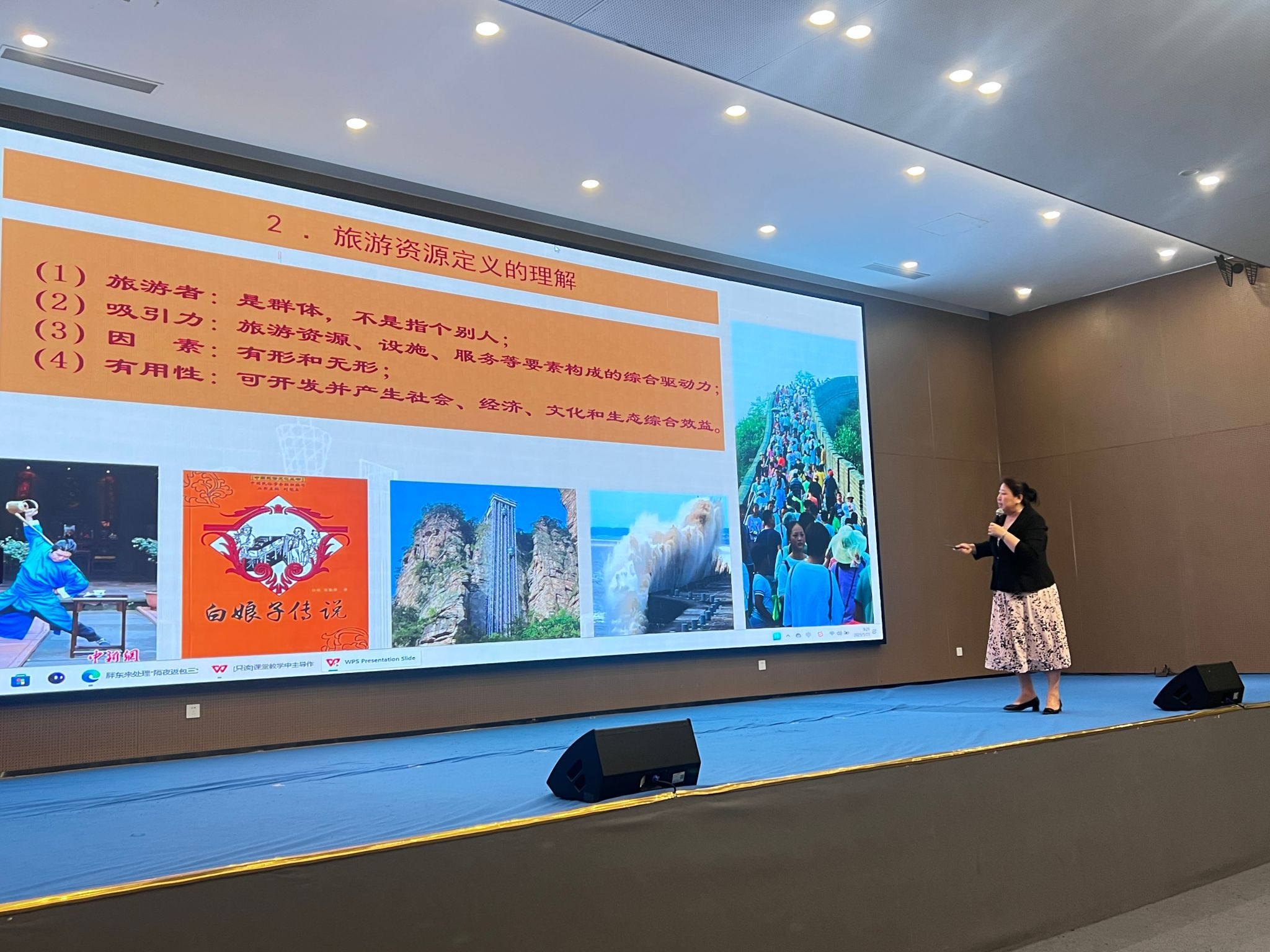 在分享过程中,王亚欣结合多个教学案例,阐释如何在教学中贯彻主导作用与主体地位的理念。以旅游资源课程为例,她引导学生分析旅游者的定义和旅游资源的分类,激发学生的学习兴趣,锻炼其分析和解决问题的能力。