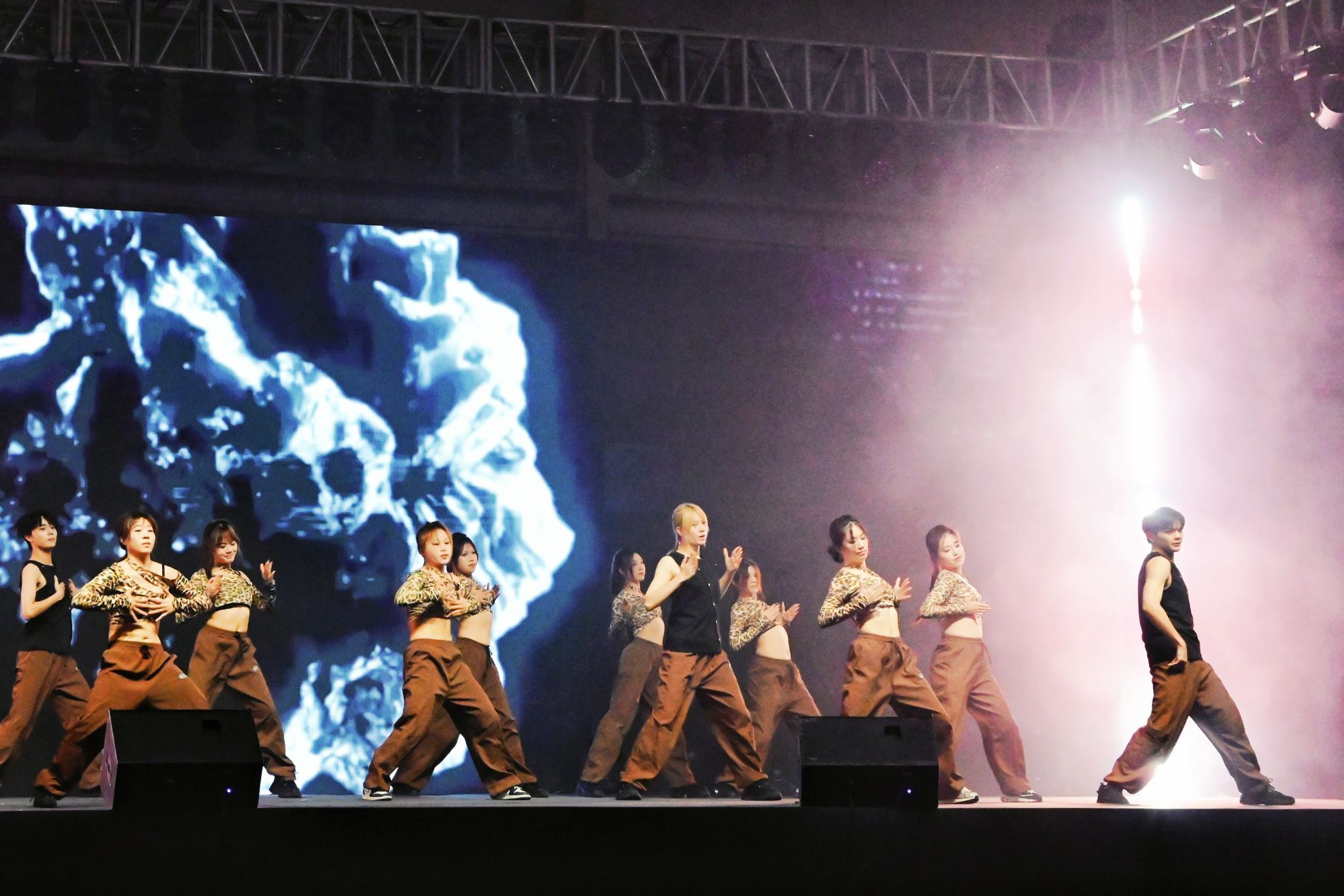 DMC街舞协则带来齐舞作品《猎》,她们以整齐划一的舞步和极具张力的动作,彰显青春魅力。