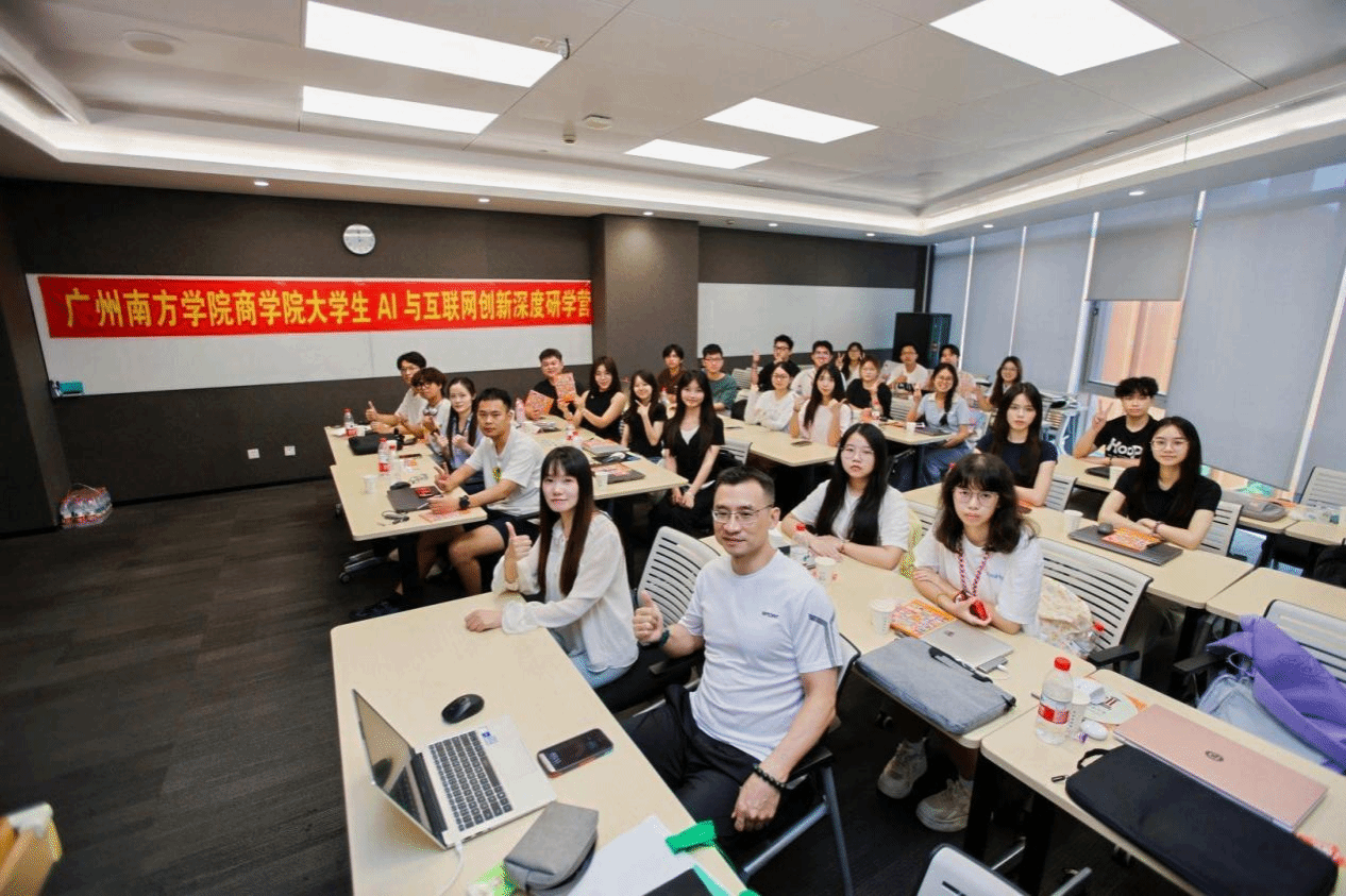 课堂上,学生们学习使用AI生成文本、创作图像到剪辑视频等,有效提升电商直播等工作效率。